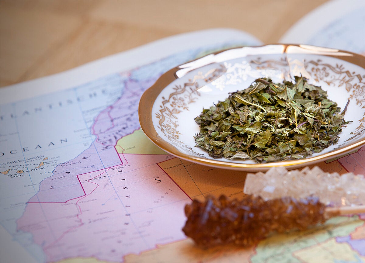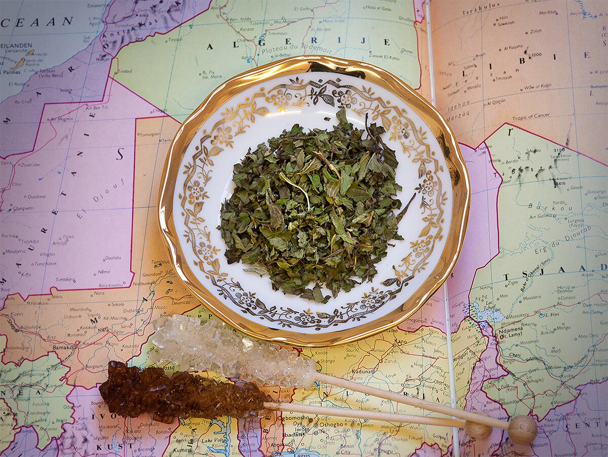 - Voor Marokkaanse muntthee is het een ander recept: 1 eetlepel Chinese groene thee (Dragon Well),1 eetlepel munt, 4 eetlepels ongerafineerde suiker, of koudgeslingerde honing.