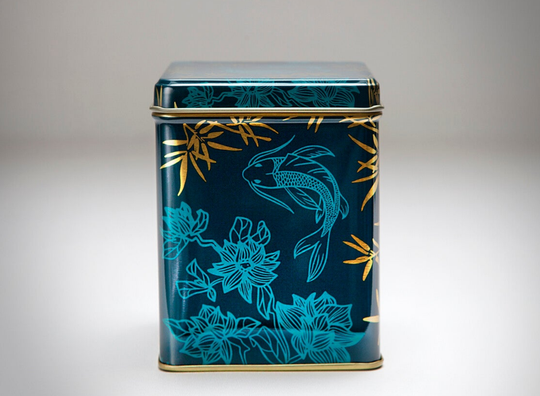 Deze praktische blikken bewaardoos voor thee vangt de essentie van de Japanse esthetiek in haar bedrukte motieven. Het blik is verfraaid met een verfijnd Japans motief dat de harmonie van eenvoud, natuurlijke elementen en symboliek weerspiegelt. De afbeeldingen op de bewaardoos brengen een serene sfeer, en nodigen uit tot het ervaren van een hemels lekkere theebereiding.
