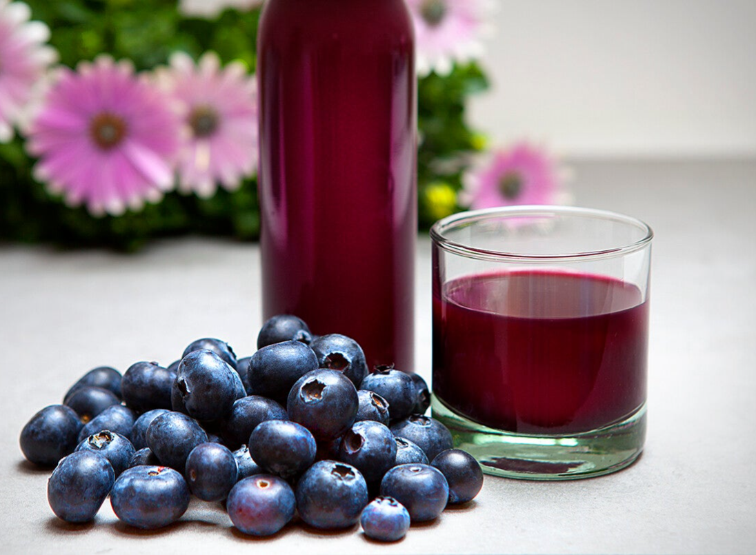 100% puur sap van bosbessen. Gefilterd en zonder suiker.