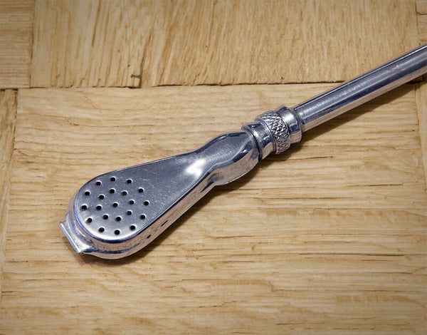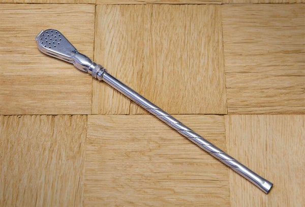Een bombilla is een essentieel instrument voor het drinken van maté. Het is een speciaal ontworpen metalen rietje met een ingebouwd filter aan het uiteinde.