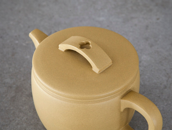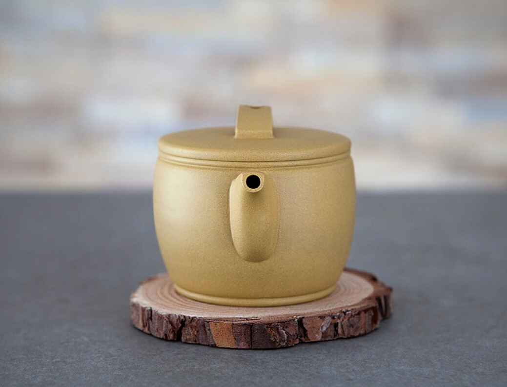 De okerachtige klei die gebruikt wordt voor dit specifieke theepotje, is gewaardeerd om zijn warme, aardse tint en de subtiele variaties in kleur die het een natuurlijke en rustieke uitstraling geven. Deze klei, een vorm van zisha klei, wordt vaak gekozen vanwege haar poreuze eigenschappen, die bijdragen aan een betere infusie van de thee. De poreusheid van de klei absorbeert geleidelijk de aroma's van de thee, waardoor het theepotje na verloop van tijd een unieke smaak ontwikkelt die bijdraagt aan de complexiteit van elke volgende infusie.
