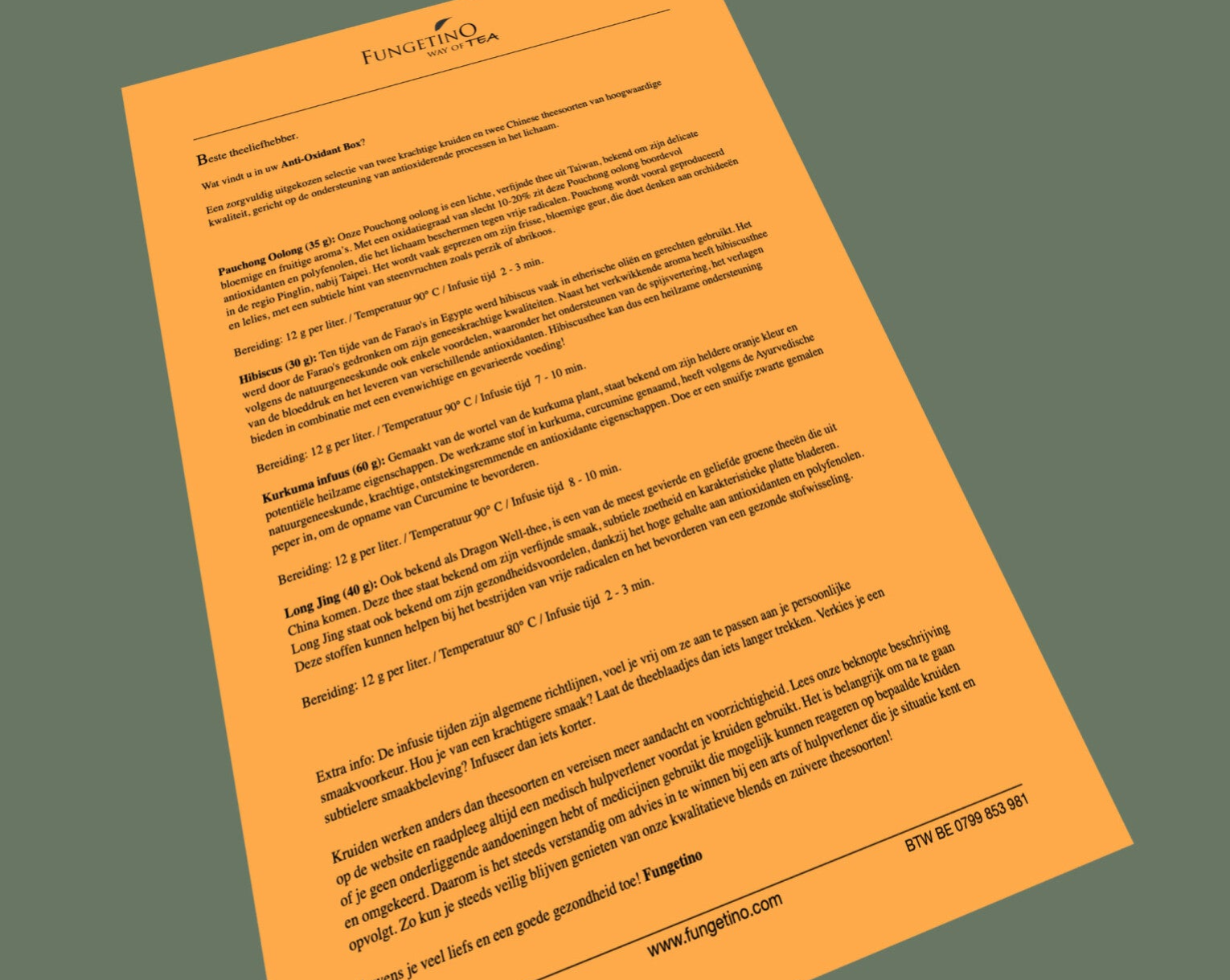 In de box zit een briefhoofd met gedetailleerde uitleg over de blends en zet instructies, zodat je elke kop optimaal kunt bereiden.